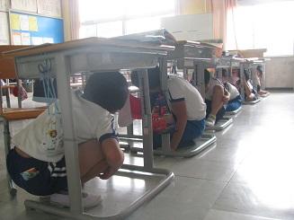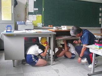 県下一斉安全確保行動訓練の実施に合わせ、本校でも11時よりシェイクアウト訓練を実施しました。