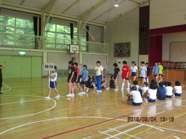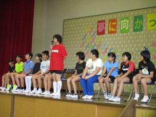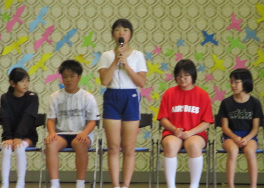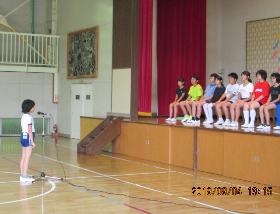 9月11日(水)に行われる町陸上記録会の選手激励会を体育館で行いました。