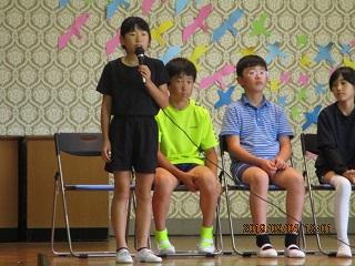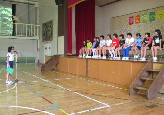 4年生の代表児童が、堂々と励ましの言葉をおくりました。