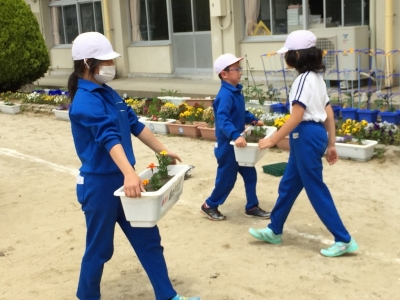 本日、3・4校時目に花いっぱい運動を行いました。