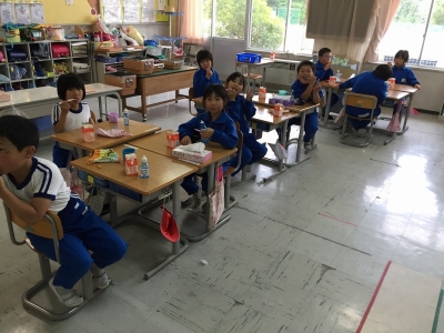 〈2年生の歯みがきの様子〉