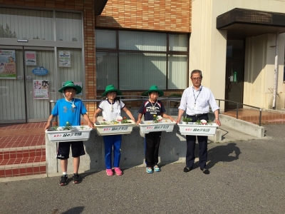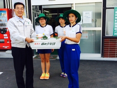 本日、緑の少年団の活動の一環として、町の公共施設や普段からお世話になっている事業所様などに、マリーゴールドの苗を植えたプランターを設置させていただきました。毎年、この事業に対してご理解とご協力をいただき、ありがとうございます。