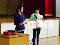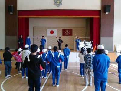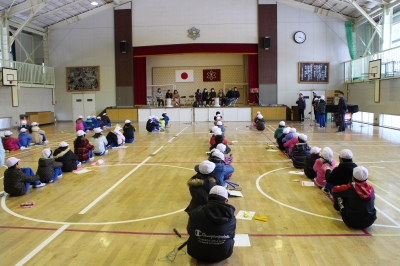 本日4校時目に、節分集会が行われました。校長先生のお話に続き、代表委員会児童が、節分にまつわる話をしました。また、節分に関してのクイズも出されました。