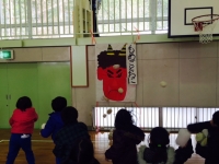 終わりに、各学年の追い出したい鬼に向かって豆の代わりの紅白玉を元気っぱい投げて鬼を追い出しました。みんなの心の中の鬼がしっかり追い出せるといいですね。