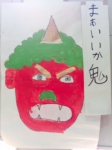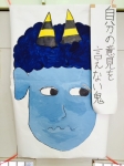 さてクイズです。次の写真は、どの学年が追い出したい鬼でしょうか。職員室の先生方の鬼も混じっています。(答えは、お子さんにお聞きください。)