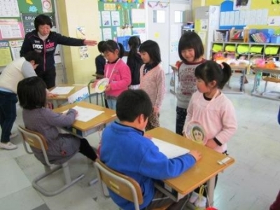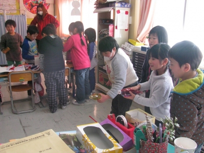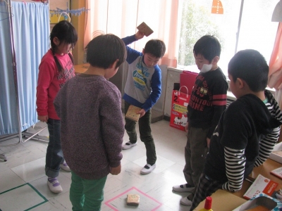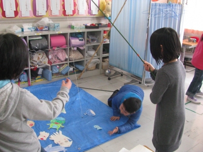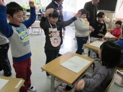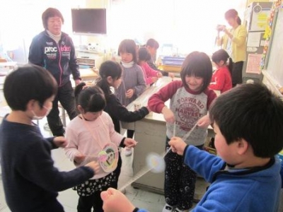1年生教室では、動物じゃんけんをしたり、ブンブンごまを回したりして楽しく遊ぶことができました。また、たくさんのプレゼントももらってとても嬉しそうでした。