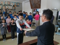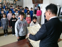 校長先生から、町書き初め大会で入賞した児童、小野町ライオンズクラブ国際平和ポスターコンテストで入賞した児童に校長先生から賞状を伝達しました。
