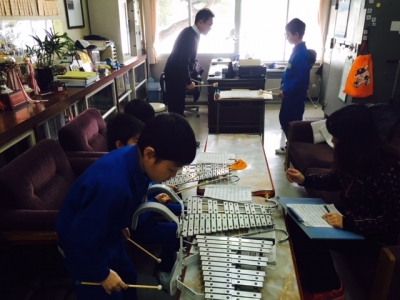 ここ何日か、校長室を訪れる4年生がいます。中太鼓と鉄琴(ベルリラ)の練習を、校長先生と事務の先生も手伝っているのでした。遊びたい気持ちをがまんして、正しく演奏できるようにと、一生懸命です。