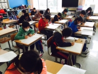 試験中は、真剣そのもの。鉛筆の音しか聞こえませんでした。