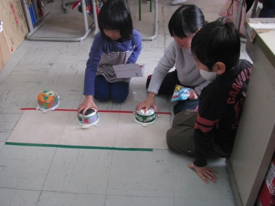 2年生が手作りしたおもちゃをの使い方を1年生に説明しながら、一緒に遊ぶことができました。面白いおもちゃがたくさんあり、大盛況でした。1・2年生にとって大満足の「おもちゃまつり」だったようです。