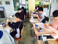 手回しの発電機を使って、電子ブザーを鳴らしたり、プロペラを回す実験でした。手回し発電機の手ごたえや、回し方を変えるとどんな変化があるかを表にまとめていました。子ども達は、実験で分かったことをしっかりとまとめることができていました。