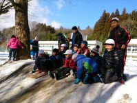 休み時間になると、通称飯豊ヒルクライムで“雪山すべり”を楽しんでいます。