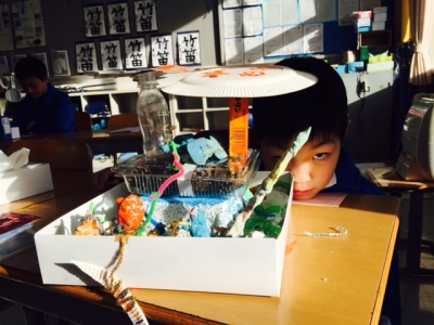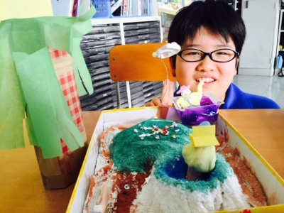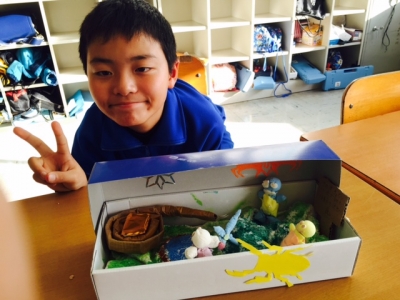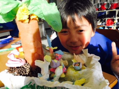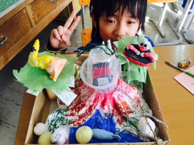 4年生は、図工の「それ行け探検隊」の単元の学習をしました。液体粘土で固めたタオルで探検島を作り、冒険のストーリーを考えてイメージに合うキャラクターや物を作って並べました。それぞれ素敵な作品を作り上げましたので、ご紹介します。