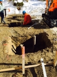 2015年2月2日 17時18分 本日より、 以前除染土が埋まっていた場所に平行棒を設置する工事が始まりました。写真は、平行棒の基礎部分を作るための穴と杭を打ち込んでいる様子です。工事はしばらくかかるそうです。スポ少などの練習で体育館周辺に駐車する際は、工事機材などに十分注意するようお願いいたします。