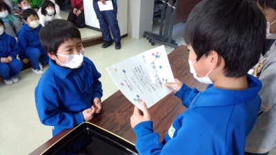 また、ハイパースポーツ委員会のマラソンで頑張った子への賞状授与もありました。
