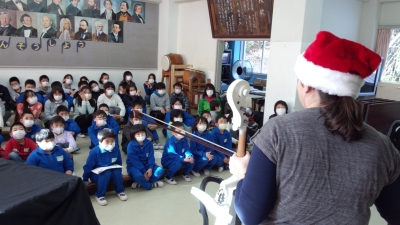 全校集会の後、特別にALTケイティ先生の電子チェロを使ってのクリスマスコンサートが行われました。