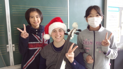 I was very happy to celebrate Chrismas with Iitoyo today. It was snowy and cold outside, but warm in everyone's smile and in my heart. I was very nervous to play cello for everyone, but they were very supportive! Some students even tried playing the cello after the performance. Merry Christmas everyone, and have a Happy New Year!!