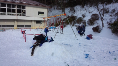 昨夜から今朝にかけ雪が降り、飯豊小学校校庭に約5cmの雪が積もりました。子どもたちは、雪山を作ったり、雪合戦をしたりと楽しく遊んでいました。