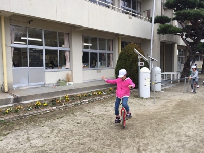 休み時間になると、ほぼ毎回一輪車に乗って、なるべく長い距離に乗れるようにと頑張っていました。転んでも転んでも諦めずに、友達と切磋琢磨しながら、コツコツと練習を重ねていました。「継続は力なり」という言葉を見事に体現してくれました。