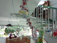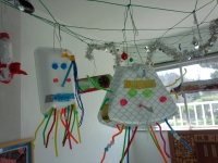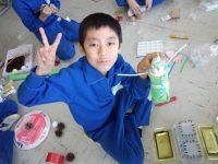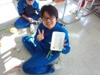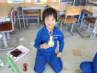 身の回りにある材料を組み合わせて楽しく作っていました。