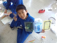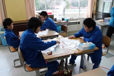 1年生は、図工で、画用紙を折ったり貼ったりして箱を作っていました。