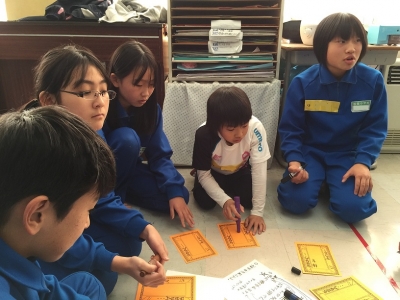 今日はグループ毎に「好きな給食のメニュー」「好きな教科」「好きなお菓子」「好きな休み時間の過ごし方」「好きな学校行事」のテーマを与えられ、それぞれ好きなものを決め、なぜならカードに理由を書き込みました。明日、子どもたちは力を合わせ、魔王との言葉バトルに挑みます。