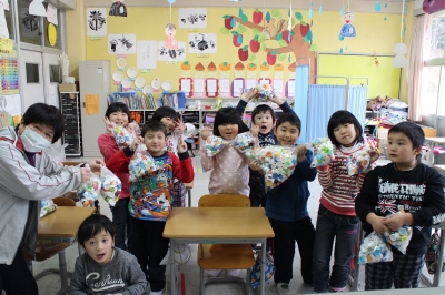 作品のできばえに大満足!みんなの目を楽しませてくれています。