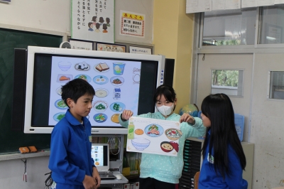 2014年12月9日 17時44分 本日、小野町給食センターの志賀先生にお越しいただき、6年生を対象に「栄養教室」を行いました。「朝食をぬいてしまうとどうなるのか」「どんな朝食を食べればよいのか」といった朝食の重要性について教えていただき、実際に朝食のメニューをみんなで考えました。