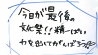 また、体育館へ行く通路には、高学年生の飯豊っ子文化祭へのメッセージが書かれていました。6年生にとっては、小学校生活最後のステージとなりますので、頑張ろうと思う気持ちが一層強いようです。