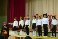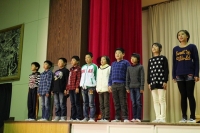 国語で学習したオリジナルの数え歌(詩)の発表、 自己紹介、「音のマーチ」の息の合った歌と合奏、かわいらしい「妖怪体操第一」の演技。どれをとっても大変元気があるすばらしい発表でした。
