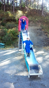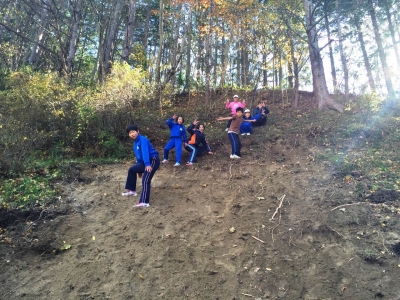 すべり台の後方の山に登ることができるように、削っていただきました。子ども達は大喜びで登っています。今後降りるときに危険がないよう、ロープを設置する予定です。