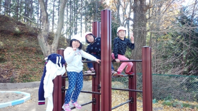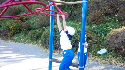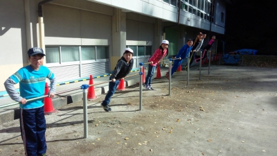 腕の力を鍛えることができる遊具です。6年生は2本の棒を使ってあっという間に頂上に登ってしまいました。頂上にいけた瞬間の喜びはひとしおのようです。