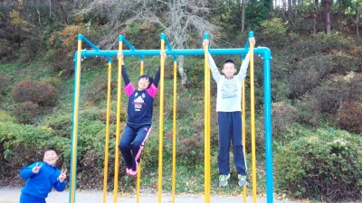 低・中・高3段の違う高さの鉄棒が設置されました。進んで練習し、各学年で目指すべき技をぜひマスターしてほしいと願っています。