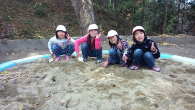 砂遊び専用の砂場を特別に作っていただきました。子ども達はさっそくシャベルを持って山やトンネルを作って楽しんでいました。