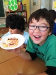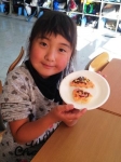 授業の中では、ケイティ先生手作りのハロウィンクッキーに飾り付けをして食べました。みんな「おいしい」と笑顔の花を咲かせていただきました。