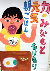 また、昨日こまちふれあいフェスタにおいて5年女子児童が、米の消費拡大ポスターコンクール優秀賞の表彰を受けました。ご飯を食べることによって元気がもりもりと出ることを表現した素敵な作品です。受賞おめでとうございます。