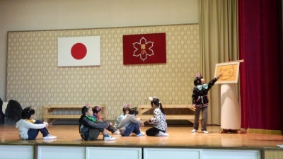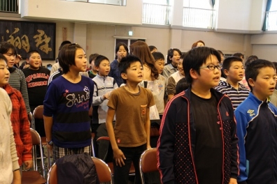 演目の途中で、飯豊小学校児童が歌を歌う場面があります。