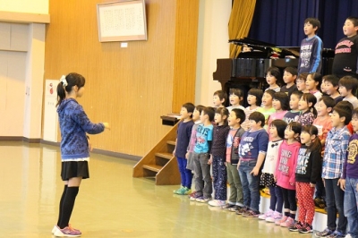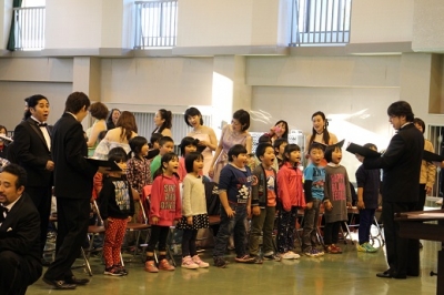 一部では、親しみやすい童謡メドレーをはじめ、「勇気100%」や、福島県が舞台の「まきばの朝」などを鑑賞しました。二部では、子どもたちには少し縁遠いと思われるオペラの歌を、関西二期会の皆さんが分かりやすく演じながら聴かせてくださいました。子どもたちは、時に笑い、手拍子をし、「ブラボー」と叫ぶなど、“本物”にすっかり魅了されている様子でした。二部の後半には、飯豊小の子ども達が一緒に歌うコーナーが設けられ、「ドレミの歌」「さんぽ」を元気いっぱいに歌うことができました。子ども達にとって思い出深い日となったことと思います。