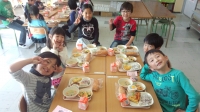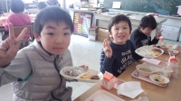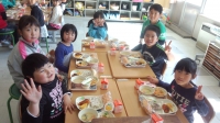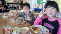 また、今日は1年生と3年生、2年生と3年生、5年生と4年生、6年生と4年生の組み合わせで、いっしょにおいしくいただきました。