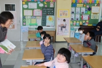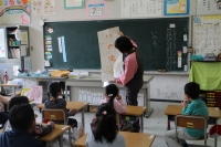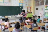 その後、各学年の発達の段階に応じて“命”について考える時間をとってもらいました。写真は1年生の様子です。「いのちのおまつり」という絵本を使って、昔から命がつながってきていることを考えさせていました。