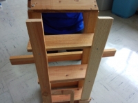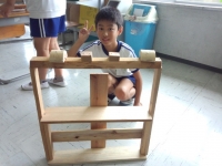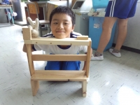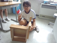子ども達は、自分が置きたいものを想像しながら、上手に木を切り、釘を打ちつけていました。「ここに漫画の本を置くんだ」「DSとカセットを置きたい」「部屋に飾ってあるものを置きたい」などと話をしながら楽しく作っていました。