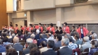 余興として、代表児童の挨拶の後、「よさこい」を元気いっぱいに踊ってきました。子ども達のパワーで高齢者の方々に元気を差し上げることができたひと時でした。また、会場の高齢者の方々から大きな拍手をいただき、子ども達も満足して帰ってきました。