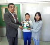 本日、飯豊郵便局長の吉田様が本校においでになり、ワールドカップサッカーレプリカボールの贈呈式が行われました。