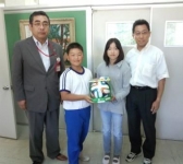 最初に田村歯科医師会の歯の衛生書写コンクールで準特選、入選に輝いた4名の児童に校長先生から賞状と盾が贈られました。