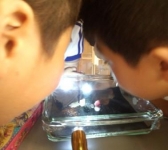 次に、霧箱をつかって放射線が飛ぶ様子を観察しました。ふわっと霧のように見える放射線を観察し、物質から放射線が出ていることを目で確かめることができました。
