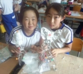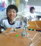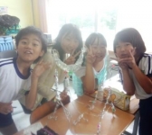 「タワーを立てよう」の学習で、針金で土台を作り、針金を巻きつけたり、曲げたりしながらオリジナルのタワーを作っていました。子ども達は、実習生の指導を受けて、ペンチを上手に使い、針金を切ったり曲げたりしていました。