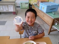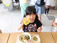 2014年7月1日 15時49分 今日の給食は、セレクトデザートでした。マンゴープリンかモーモーゼリーのどちらか好きな方を選びました。