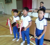 入賞者は、6年男子100mが3位、6年女子100mが1位、5年男子100mが3位、女子ソフトボール投げで6年女子が4位、女子800mで5年女子が3位でした。