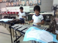 音楽室を訪れると、3・4年生が様々な楽器のパートに分かれて音楽の練習をしていました。その曲名は、「スーパーカリフラジリスティックエクスピアリドーシャス」という大変長い名前の曲です。今日が初めてみんなで合わせて練習したそうですが、初めてとは思えないぐらい息がぴったりの演奏でした。