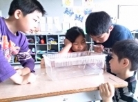 子どもたちはモンシロチョウの成長を楽しみにしており、朝、教室に入るやいなや「蝶になった~」と狂喜乱舞。生命への慈しみの気持ちを持ちながら、熱心に観察しています。